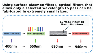 We have developed the world's smallest wavelength sensor (spectrometer) based on nano-patterned surface plasmon color filter arrays ​