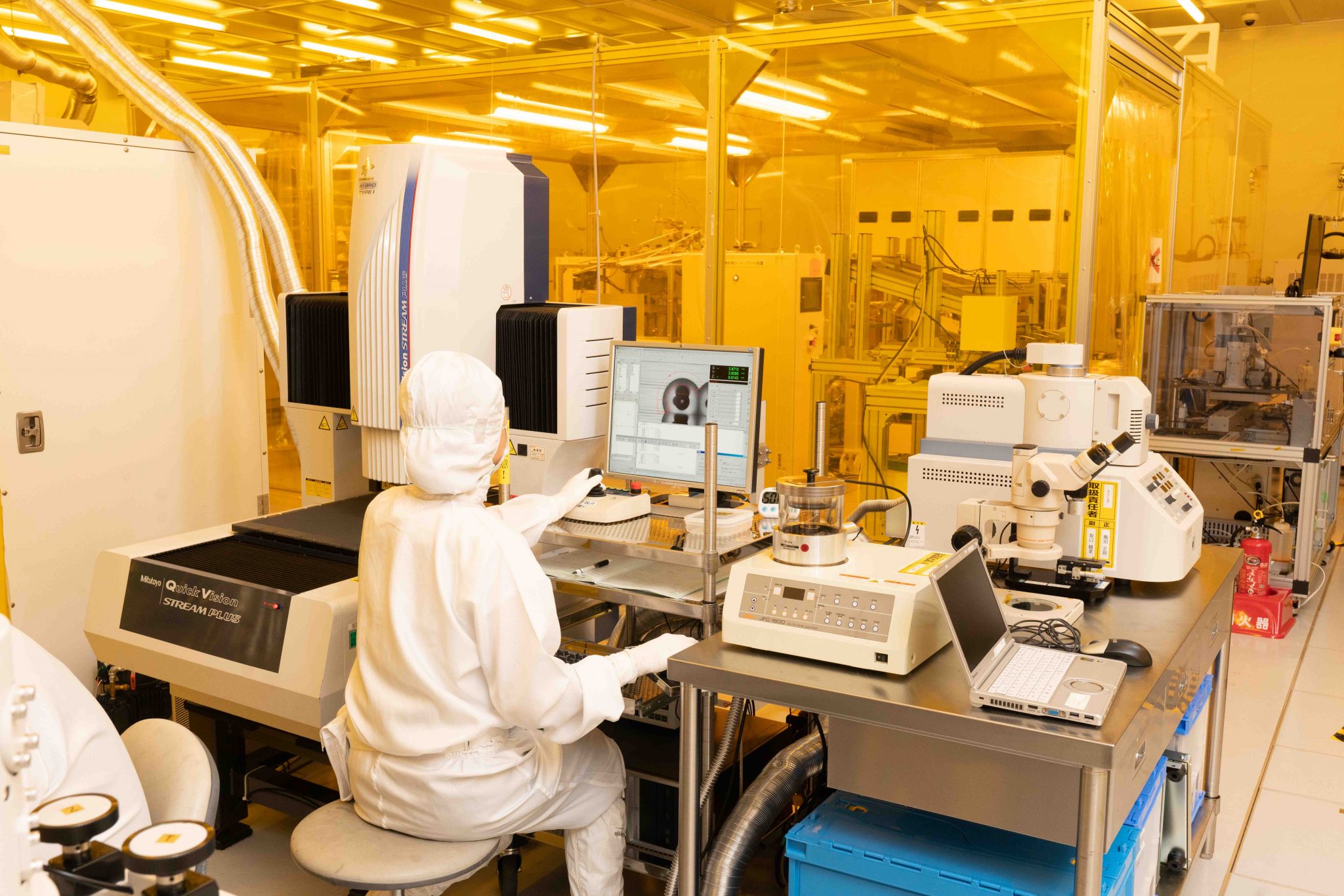 In order to conduct volume manufacturing for devices with nanostructures, a high level specification of environmental cleanliness and strict management of the same is a requirement. SCIVAX has established a manufacturing facility in Toyama Prefecture that features a state-of-the-art cleanroom.