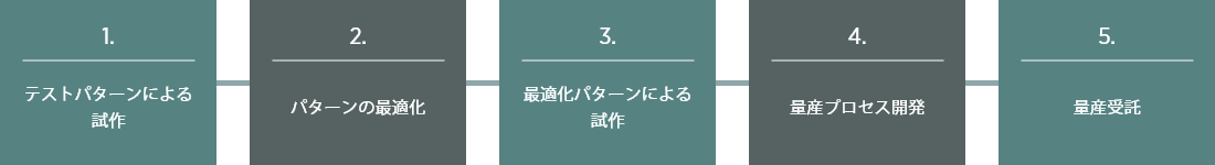 各技術に精通したスペシャリスト集団とこれまでの多くの受託実績により、パターンの提案、樹脂の選定、前後工程も考慮したトータルプロセスのご提案が可能です。